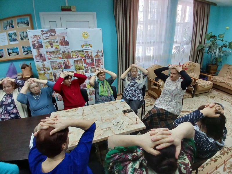 Во второй части встречи выяснили почему с возрастом учащаются случаи прикусывания языка, щёк, поперхивания, усиления ночного храпа. Разучили специальные приемы и упражнения, позволяющие расслабить спазмированные мышцы лица, головы и шеи, а также поддерживать функционирование акта глотания, голоса и речи, а значит и профилактики неприятных и травмирующих ощущений.