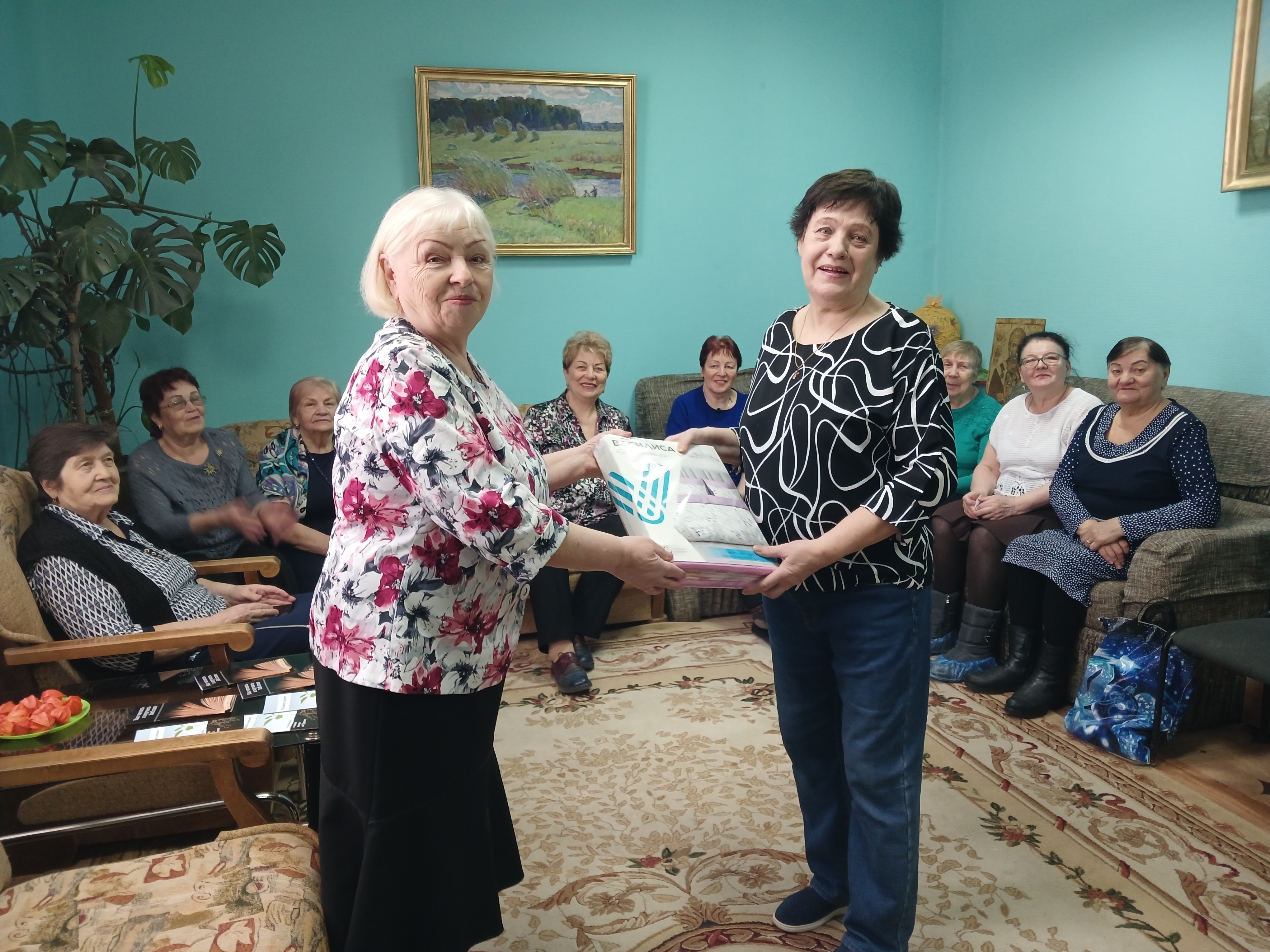 Члены клуба подготовили трогательные поздравления, даже зачитали стихи в честь именинницы. Староста клуба Аверина В.И. вручила подарок от всех присутствующих и пожелала доброго здоровья, любви и внимания близких. А каждый вплёл в венок поздравлений своё особое пожелание!