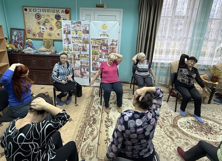 Под руководством тренера Т.В. Шебеко участники клуба выполняют специальный комплекс упражнений, который укрепляет мышечную систему и подвижность суставов, снижает метаболический синдром. Гимнастика, насыщая организм кислородом, заставляет активно работать участки головного мозга, отвечающие за память и внимание.