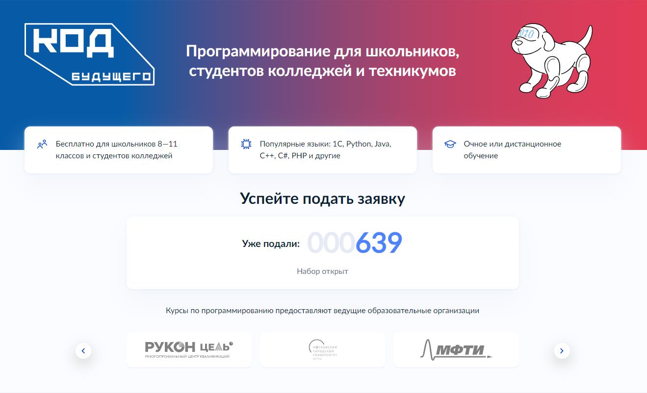 Записаться можно на Госуслугах по ссылке: https://www.gosuslugi.ru/futurecode. Количество мест ограничено!