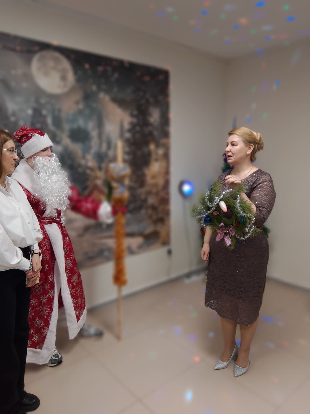 Тёплая и волшебная обстановка царила в зале с первых минут праздника. Уютно украшенный зал, мерцающие гирлянды и новогодняя ёлка создавали неповторимую атмосферу волшебства и предвкушения чуда. Гости с удовольствием погрузились в мир сказки и веселья.