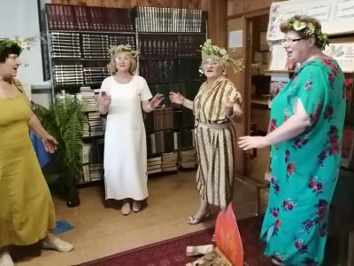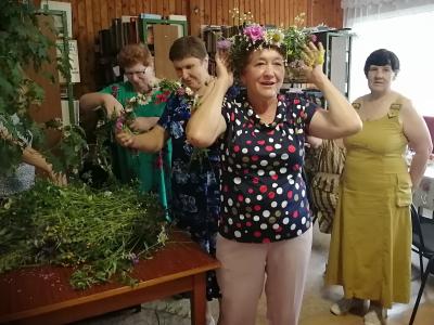 Гости узнали о происхождении старославянского праздника, о его традициях и поверьях о чудодейственной силе растений в Иванов день, благотворно влияющих на здоровье людей, услышали рекомендации ведущей о полезных свойствах трав. Слушая увлекательный рассказ о древних обычаях, участницы клуба «Золотого возраста» сплели себе красивейшие венки из полевых цветов и разнотравья. После чего, водили хороводы, прыгали через импровизированный костер. За участие в программе все участницы клуба получили в подарок «цветок папоротника» ручной работы, сделанный из бисера. Завершилось мероприятие дружеским общением за чашкой ароматного чая на травах со сладостями. Праздник получился познавательным, интересным и понравился всем.