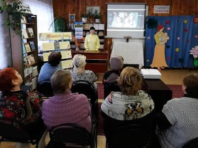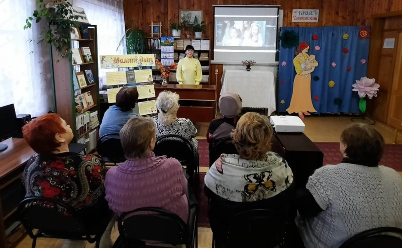 Библиотекарь рассказала историю возникновения и развития этого праздника, прочитала притчу о материнском сердце и предложила гостям прочитать книги с книжной выставки «Мамин день», а чтобы заинтересовать своих читателей — коротко рассказала о каждой книге, представленной на выставке.