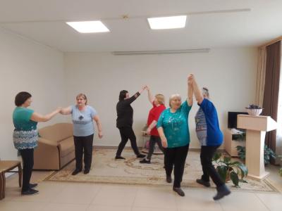 Граждане пожилого возраста, постоянные члены кружка «Ритмика» СОГБУ «Вяземский КЦСОН» Темкинского отделения продолжают занятия на регулярной основе, тем самым повышая уровень общей физической подготовки. Музыкальное сопровождение-основа занятий. Такт, пластика все эти понятия совершенствуются на наших встречах.
