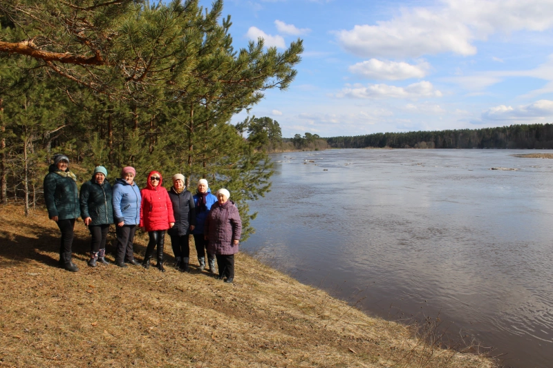 28 марта участники Клуба золотого возраста совершили прогулку по волшебному месту на берегу реки Угра. Здесь взбунтованные весною воды Угры, вынесли реку на берег, затопив луга и часть леса. На речке весенний разлив. Ветер в вековых соснах пел песню, и вершины деревьев гнулись вслед пролетающим облакам. Пожилым людям понравилось в этом живописном месте, они неспешно гуляли, дыша чистым сладким воздухом и наслаждались наступившей весною.