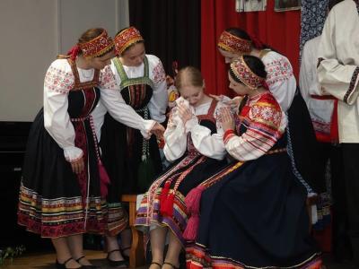 Члены клуба "Золотой возраст" приняли участие в областном фестивале " У истока". Они совместно с хореографическим народным колективом "Славяне" показали театрализованное представление "Вяземская свадьба".