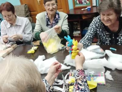 Все с большим удовольствием в ходе мастер-класса создали своих уникальных симпатичных кроликов. Будет чем порадовать внуков в праздничный день, ведь каждый проявил свою фантазию и творчество. А творческая деятельность действует как форма арт-терапии, снижает уровень стресса, улучшает настроение и эмоциональное состояние. Совместное творчество и общение в процессе работы укрепляют дружеские связи и создают позитивную атмосферу.