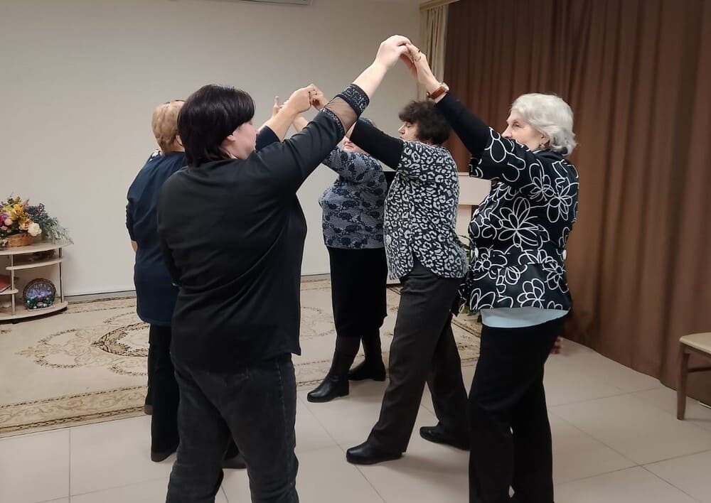 В парном темпе танца мы разучивали элементы под музыкальное сопровождение. Взаимодействие в танце друг с другом неотъемлемая часть социализации пенсионеров. Выполняем общеразвивающее упражнения на различные группы мышц, что способствует укреплению организма.