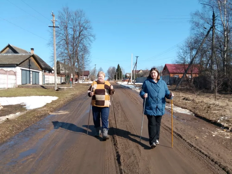 В рамках технологии «Скандинавская ходьба» состоялась встреча с получателем надомной службы СОГБУ «Вяземский КЦСОН» Угранского отделения с Угра и специалиста.