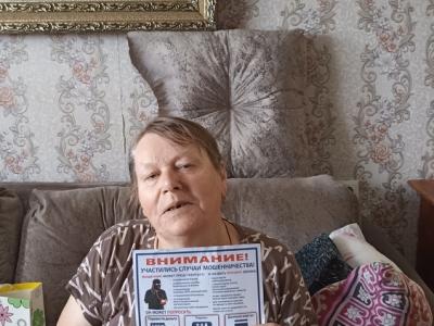 На следующий день после лекции 7 июля 2023 года состоялся выезд, в ходе которого заведующей отделением социального обслуживания на дому Ковалевой Еленой Александровной и специалистом по социальной работе Павленко Анной Борисовной была проведена беседа с получателями социальных услуг на тему: «Преступления в отношении лиц пожилого возраста. Методы борьбы с данными преступлениями». Также были розданы памятки «Внимание! Участились случаи мошенничества!»