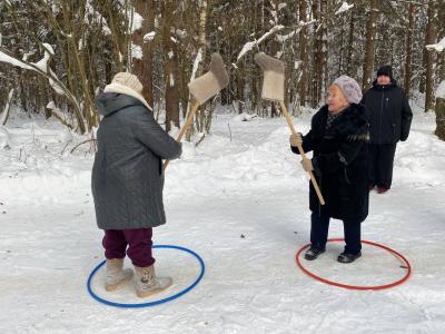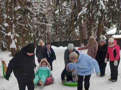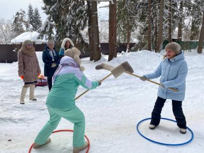 Морозный воздух и искрящийся снег словно звали нас на улицу, и мы с удовольствием окунулись в атмосферу зимних забав! Смех и азарт сопровождали наши катания на ватрушках и санках. А настоящим испытанием ловкости и силы стало соревнование по метанию валенок на дальность – кто дальше? Не обошлось и без веселого "фехтования" валенками, которое вызвало бурю эмоций и улыбок.