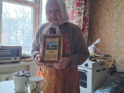 Нина Григорьевна в этом месяце отпраздновала 90-летие. Подарки были переданы социальными работниками в г. Вязьма.