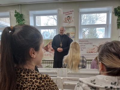 Благочинный Вяземского округа протоиерей Валерий Калинин, настоятель храма Преображения Господня, в своей речи отметил, что День беременных совпадает с праздником Благовещения Пресвятой Богородицы. Он провёл параллель между благой вестью, полученной Девой Марией, и радостью ожидания ребёнка в каждой семье. Священник пожелал будущим мамам здоровья и душевного мира.