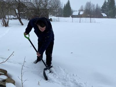 4 марта 2023 года члены волонтерского отряда «Железнодорожный экспресс», действующий на базе Вяземского железнодорожного техникума, в очередной раз оказали волонтерскую помощь получателю социальных услуг надомного обслуживания, проживающего в с. Туманово. Ребята оказали услугу по уборке придомовой территории от снега.