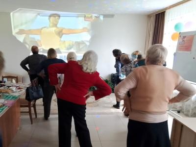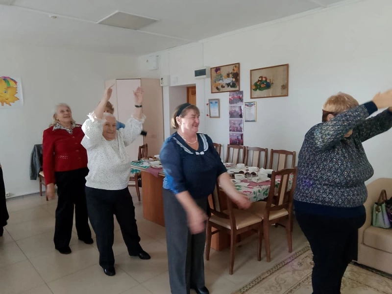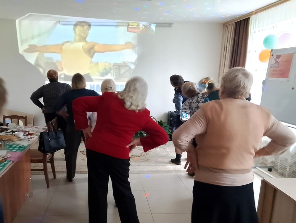 Приветствуя всех присутствующих бурными аплодисментами, нам очень приятно сегодня поздравить тех, кто в юности был в рядах Всесоюзного Ленинского Коммунистического Союза молодёжи, и пожелать здоровья и счастья. Затем мы провели веселую утреннюю зарядку, которую в СССР транслировали по радио.