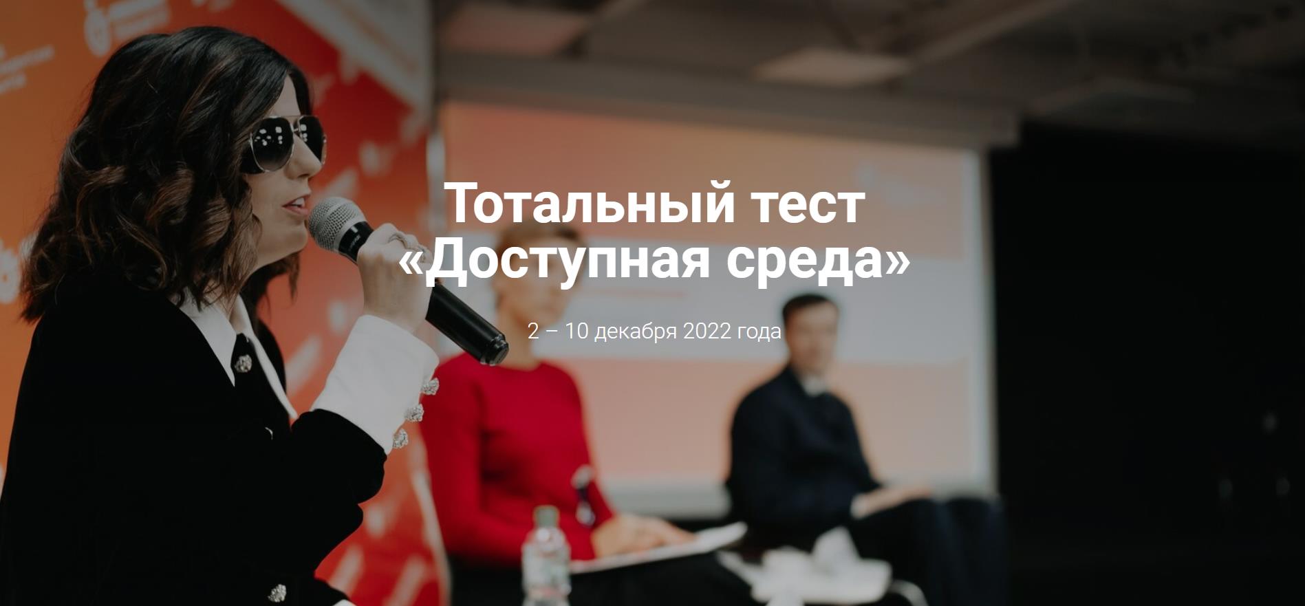 В преддверии Международного дня инвалидов при поддержке Общероссийского народного фронта и Национальной ассоциации участников рынка ассистивных технологий «АУРА-Тех» состоится общероссийская акция Тотальный тест «Доступная среда». Акция направлена на привлечение внимания жителей России к теме инклюзии и повышения качества жизни людей с инвалидностью.