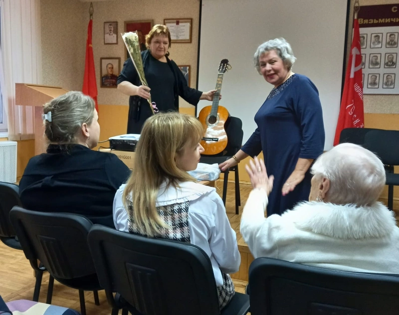 В завершении встречи со своим новым репертуаром выступила поэт и бард Татьяна Нестерова. Знакомые песни зал пел вместе с автором.