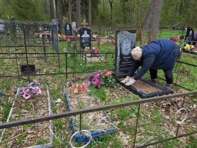 29 апреля 2025г. получатель социальных услуг д. Селенки Казакова Нина Анатольевна обратилась за помощью в СОГБУ «Вяземский КЦСОН» Темкинское отделение с вопросом по уборке фамильного захоронения на кладбище.