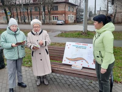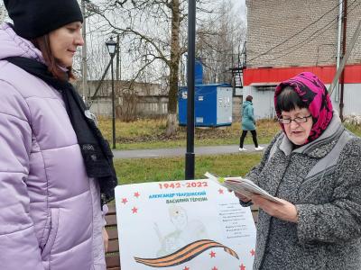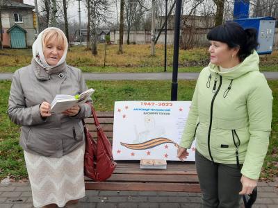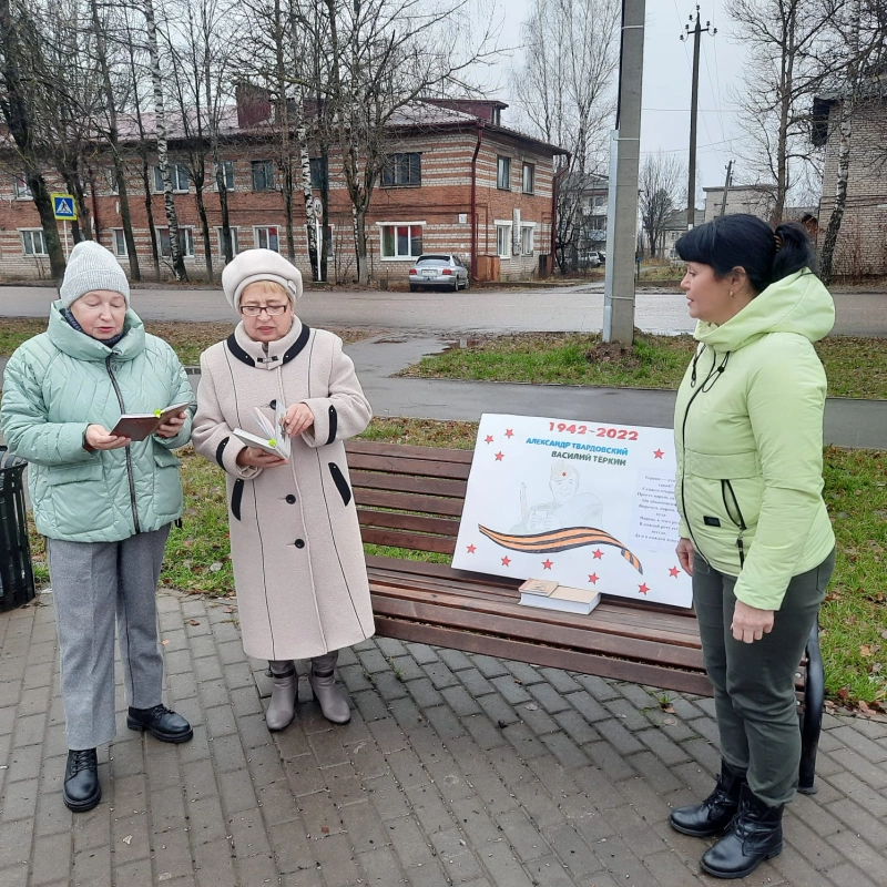 9 ноября культорганизатор клуба «Золотого возраста» Голод С.А. провела уличную акцию «Читаем «Василия Теркина» вместе». Желающие смогли зачитать вслух отрывки из поэмы «Василий Тёркин». Участниками акции стали, в том числе и люди пожилого возраста.