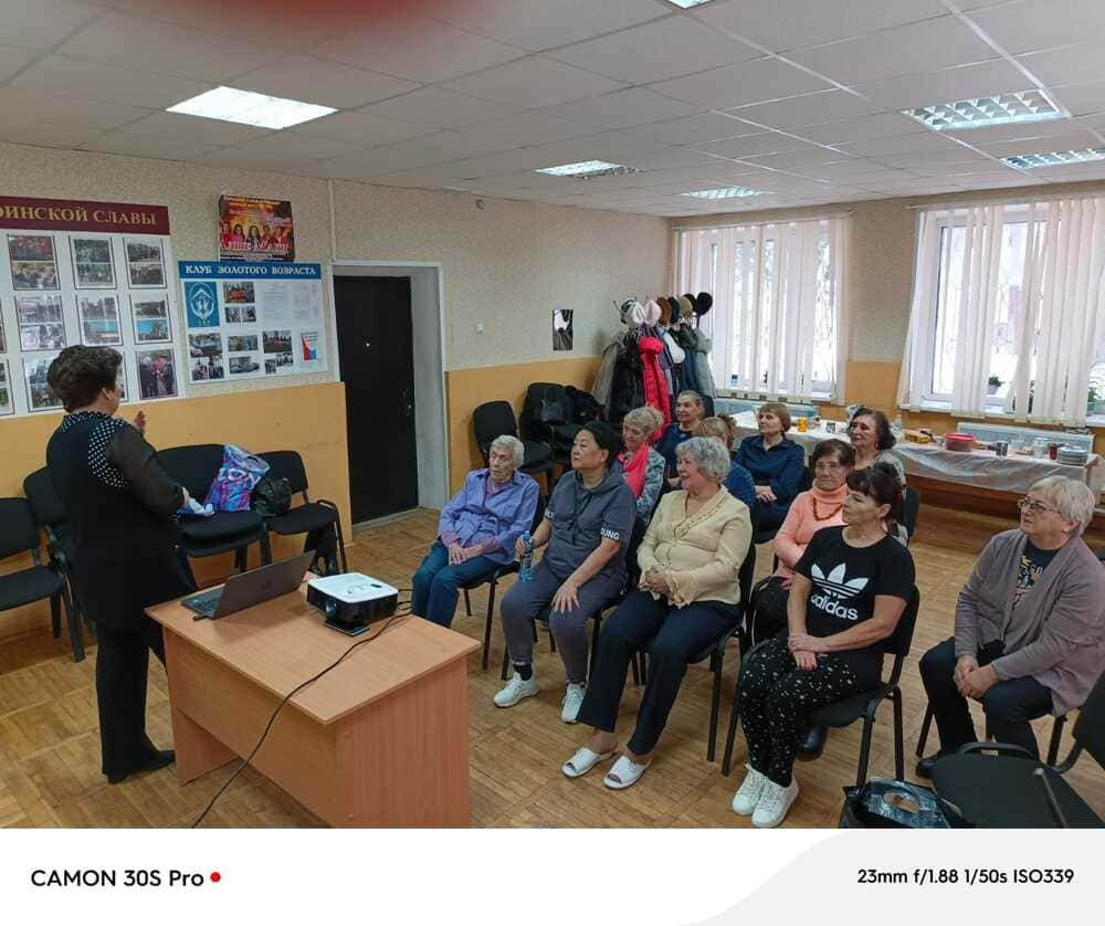 13 декабря 2024 года в клубе Золотого возраста состоялась встреча с интересным человеком Ольгой Еркешевной Селявиной, человеком, влюбленным в историю своего Отечества, человеком, глубоко любящим город Вязьма. В прошлом Ольга была преподавателем истории, директором исторического музея. Все с большим интересом выслушали рассказ Ольги Еркешевны о своей семье, о своей деятельности, как директора историко-краеведческого музея. В начале встречи с удовольствием позанимались аэробикой. Встреча получилась насыщенной и очень интересной.