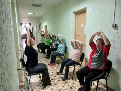 В клубе «Активное долголетие. Вязьма» прошло физкультурное занятие. Тренер Татьяна Шебеко подготовила программу простых и безопасных упражнений с учетом физических особенностей пожилого человека и сделала упор на растяжку мышц, восстановление эластичности связок, подвижности суставов. Занятия с тренером позволяют правильно выбирать нагрузки, чтобы занятия приносили только пользу.