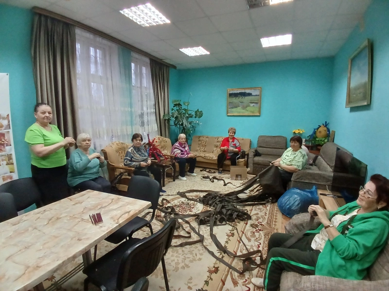 Участники клуба «Активное долголетие. Вязьма» Вяземского комплексного центра социального обслуживания населения уже передали в зону СВО гуманитарную помощь, собрали Новогодние подарки для бойцов и вручили их волонтёрам фонда «Мы вместе». А теперь они помогают волонтёрам этого фонда плести маскировочные сети.