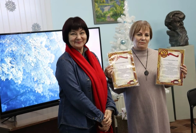 В Центральной библиотеке прошло итоговое мероприятие года, на котором награждали работников, отличившихся в 2025 году. Заведующей Городской библиотеки №3 Фатьяновой Л.С. и ведущему библиотекарю Городской библиотеки № 3 Солодовой Л.А. были вручены Благодарности директора Вяземского КЦСОН Е.А. Давыдовой. Вручила Благодарности культорганизатор Э.А. Решетникова.