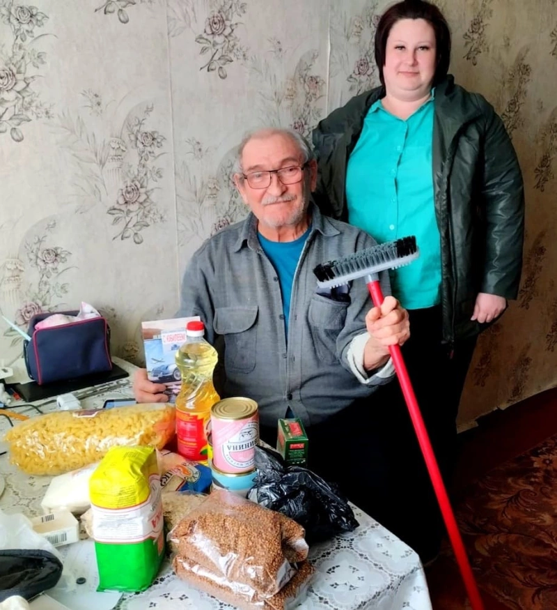 При помощи Вяземской Епархии подарили нужный, вкусный подарок- продуктовый набор. Юбиляр благодарил за оказанное внимание и проявленную заботу