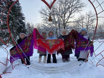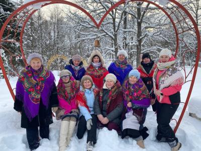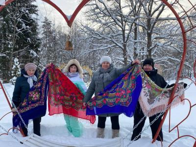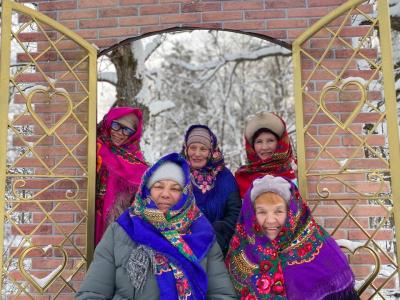 Наши прекрасные женщины, облачившись в яркие русские платки, превратились в настоящих сказочных героинь. Каждый платок добавлял красок и подчеркивал их неповторимое очарование. С улыбками и задором они позировали перед объективом, ловя каждый момент этого чудесного дня.